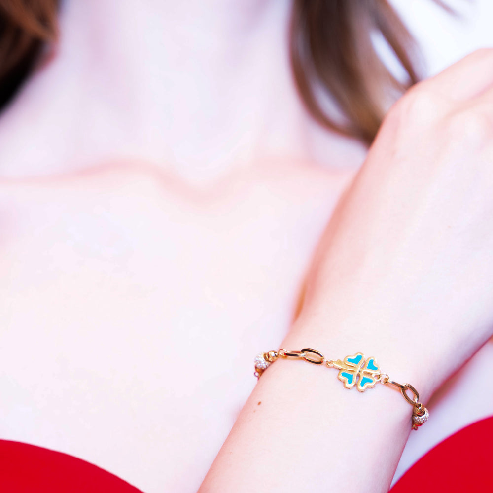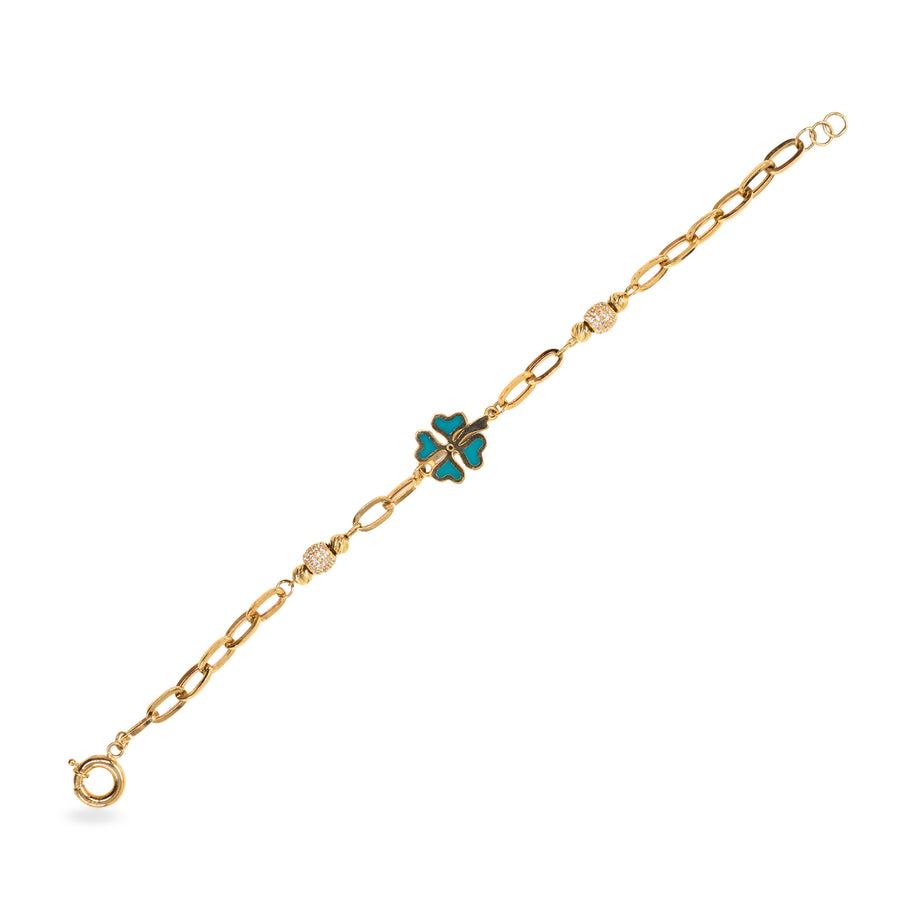 14 Ayar Altın Yonca Motifli Taşlı Bileklik