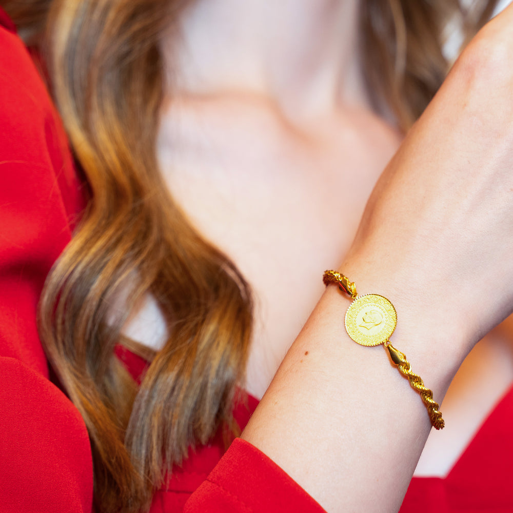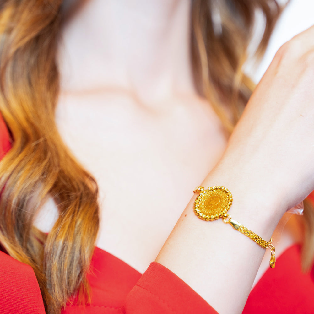 14 Ayar Altın Çeyrek Altınlı Zarif Bileklik