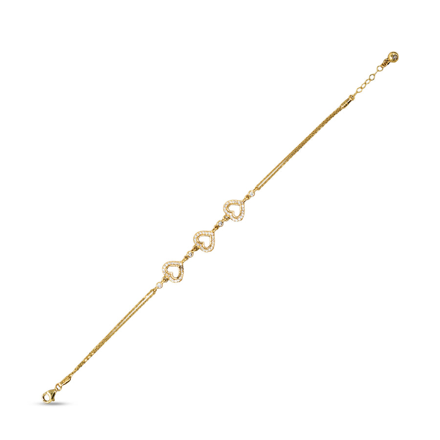 14 Ayar Altın Üç Kalpli Taşlı Zincir Bileklik