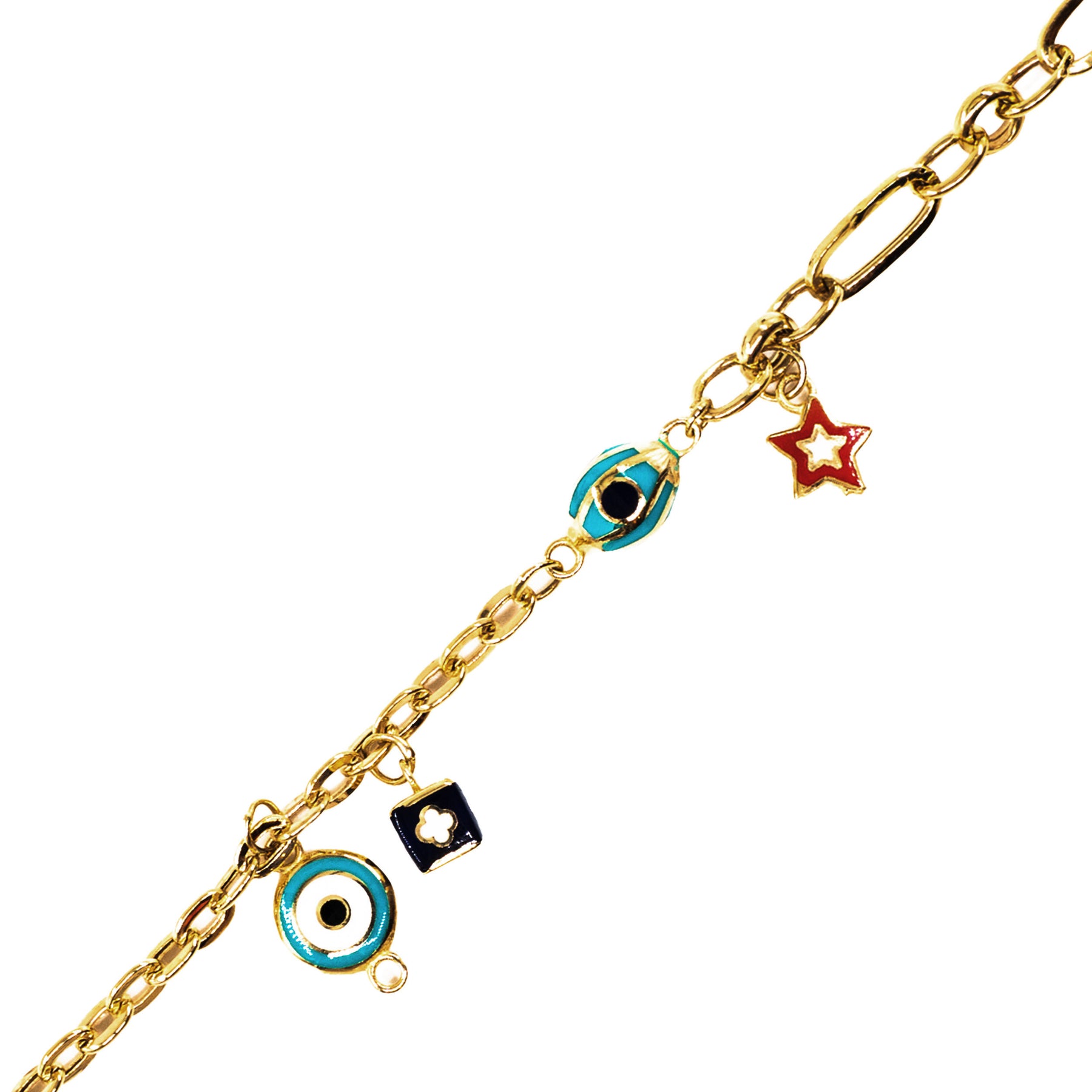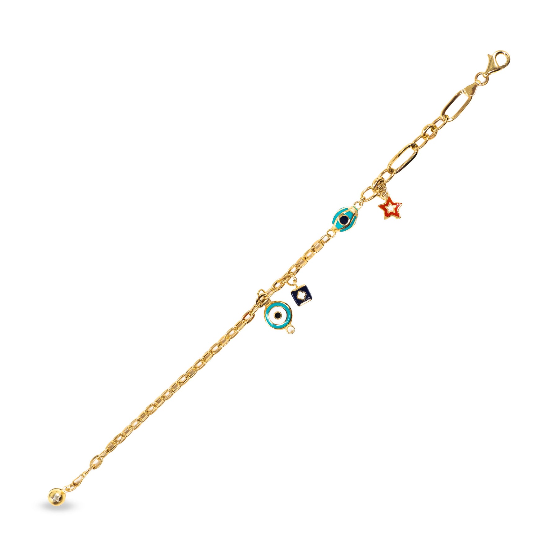 14 Ayar Altın Nazar Boncuklu Renkli Figürlü Bileklik