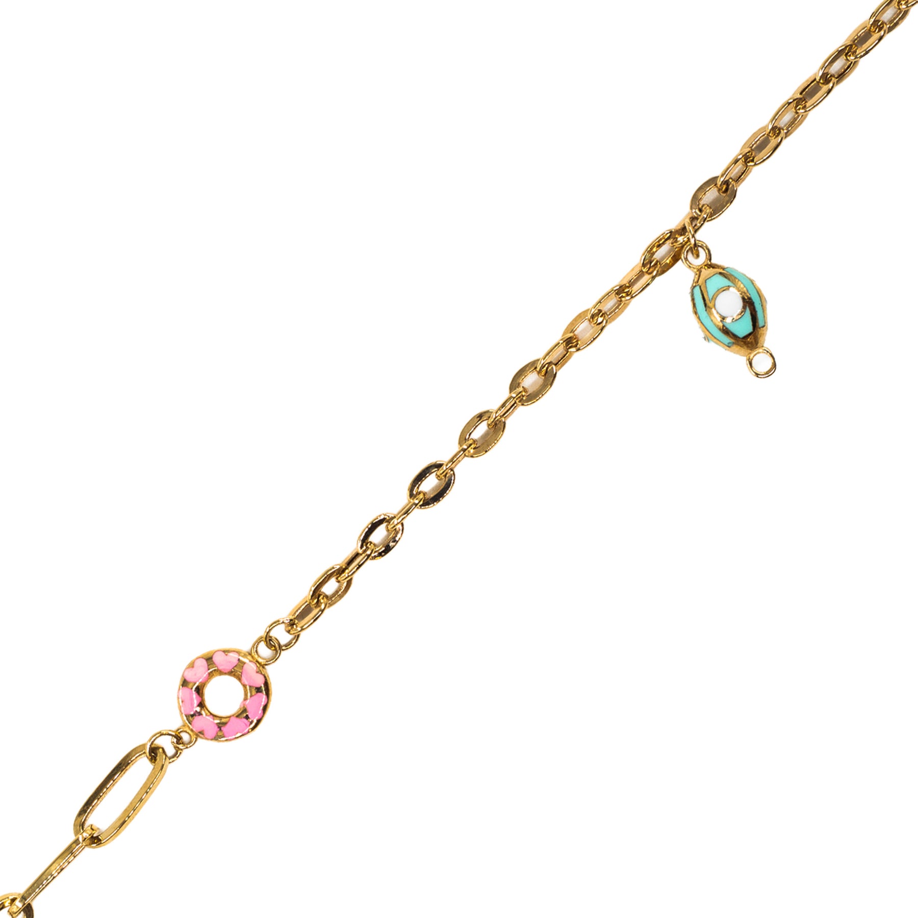 14 Ayar Altın Renkli Figür Detaylı Zarif Bileklik, enerjik renkleri ve estetik zincir tasarımıyla şıklığınızı ön plana çıkarır. Modern detayları sayesinde günlük kombinlerinize hareket katarken, özel günlerde de zarif bir aksesuar olarak stilinizi tamamlar.