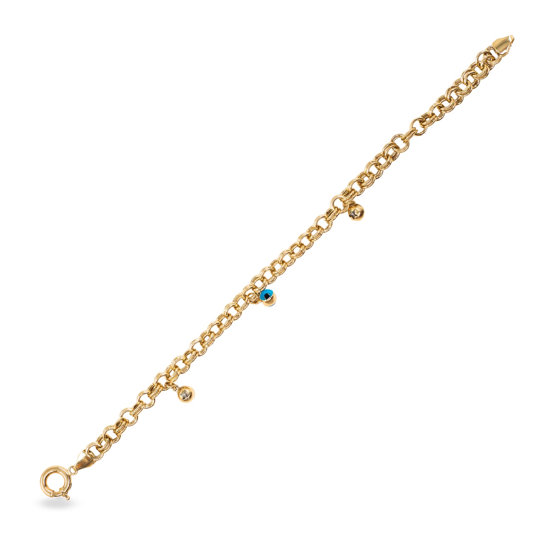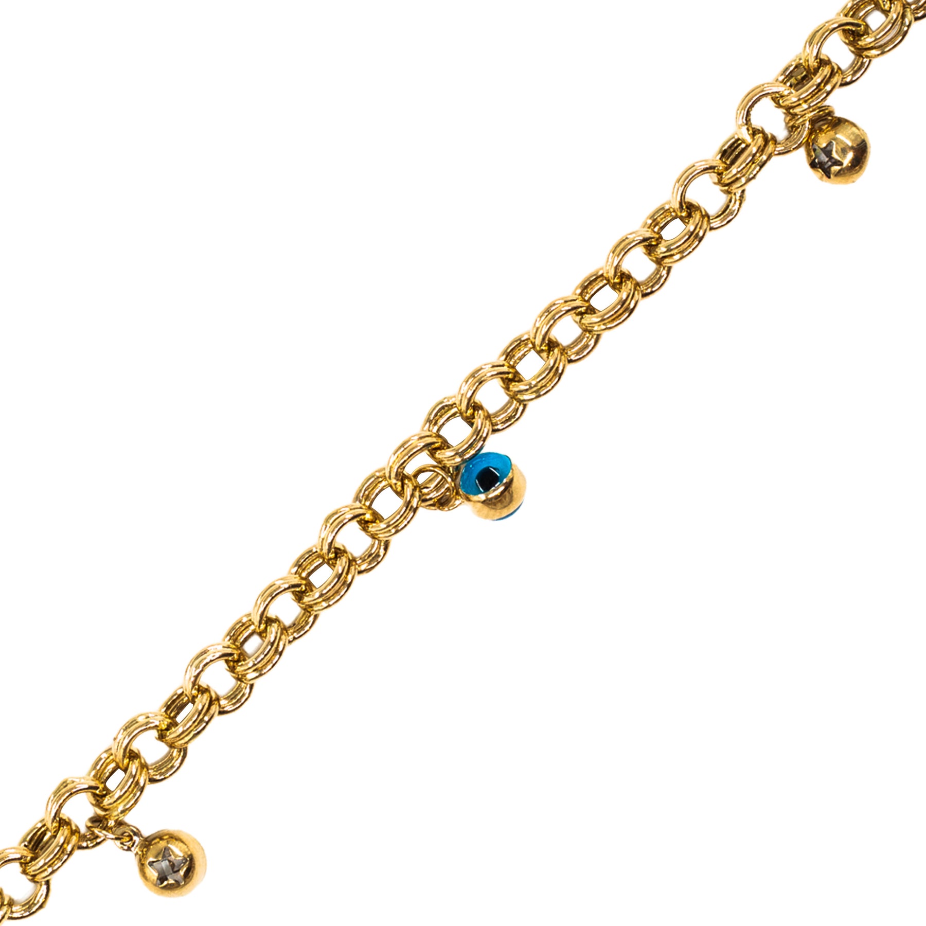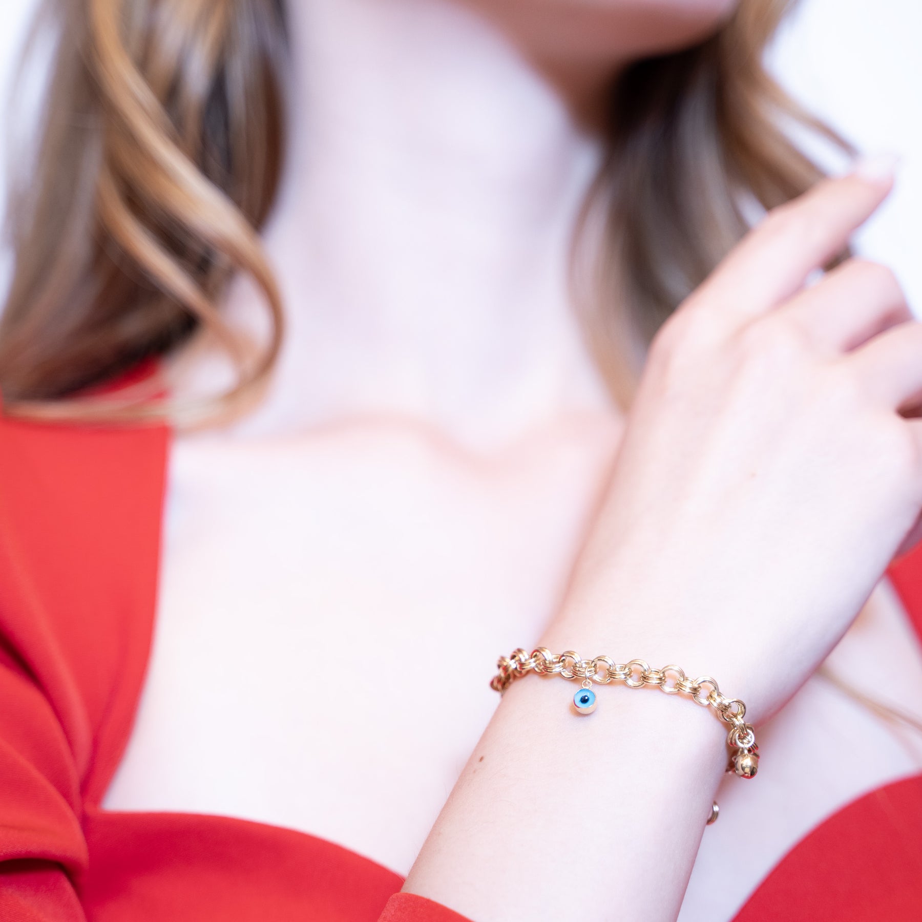 14 Ayar Altın Sallantılı Top Detaylı Bileklik, şık tasarımı ve estetik detaylarıyla günlük kombinlerinize hareket katar. Modern dokunuşu ve zarif görünümüyle hem günlük hayatta hem de özel günlerde stilinizi tamamlayan değerli bir parçadır.