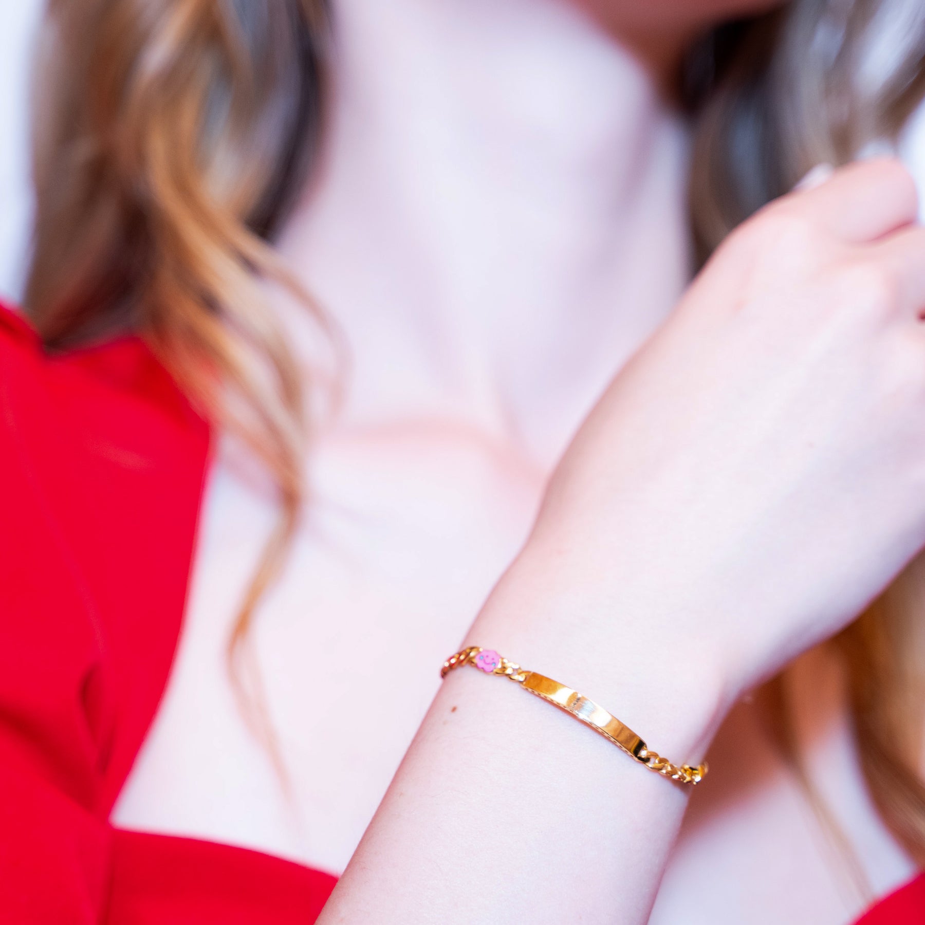 14 Ayar Altın Çocuk İsimlik Bileklik, kişiye özel isim yazılabilme özelliğiyle değerli ve anlamlı bir parçadır. Minik bileklere zarafet katarken, özel günlerde unutulmaz bir armağan olarak öne çıkar.