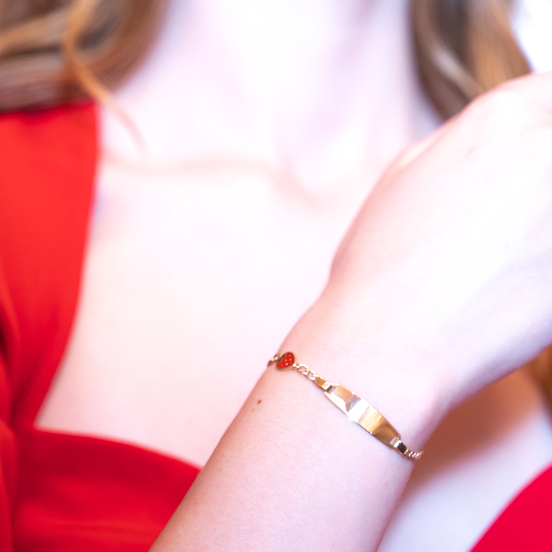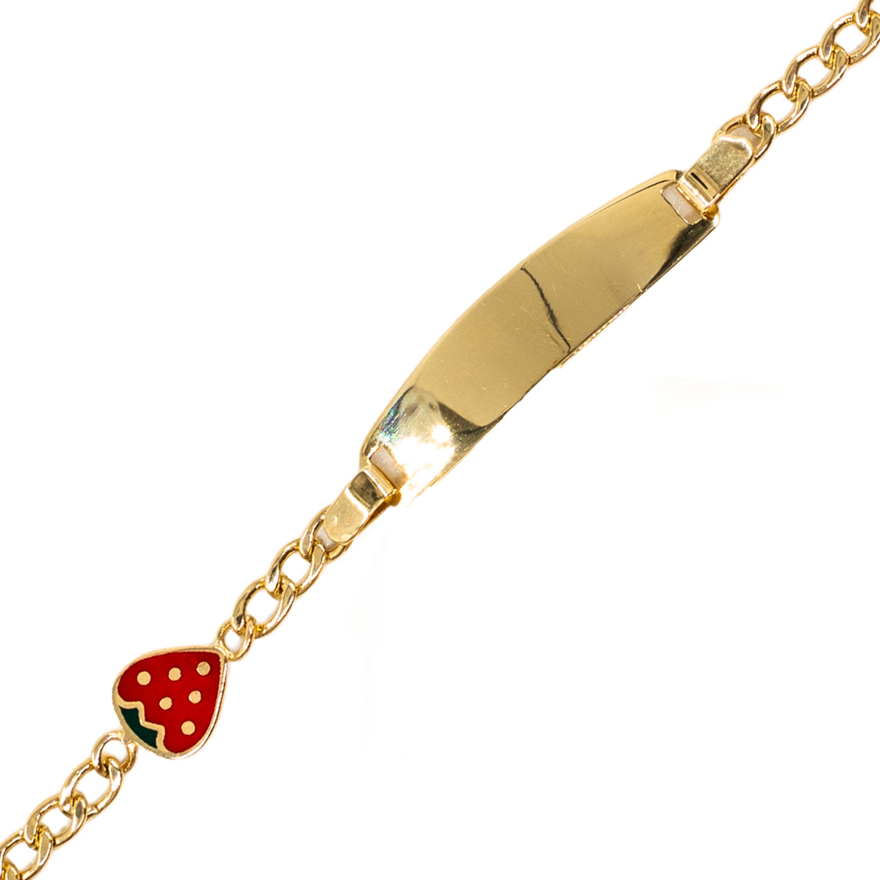 14 Ayar Altın Çocuk İsimlik Bileklik, çilek figürüyle eğlenceli bir görünüm sunarken, isim yazılabilen plakası sayesinde kalıcı bir hatıraya dönüşür. Minik bileklere zarafet katan bu özel model, sevdiklerinize anlamlı bir armağan olarak öne çıkar.