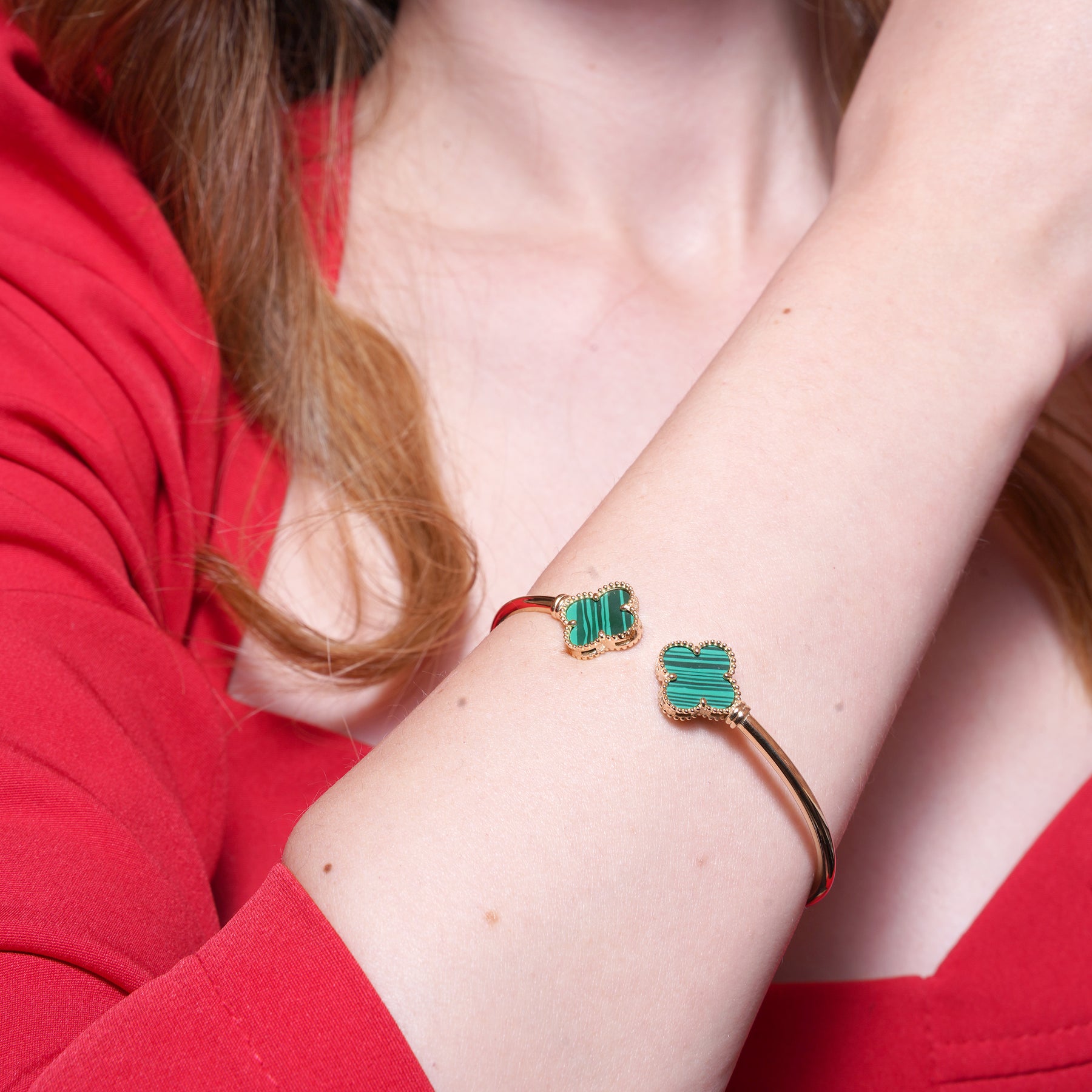 Yonca figürünün şans simgesi ile altının ışıltısını buluşturan bu 14 ayar altın kelepçe, zarif ve modern tarzıyla öne çıkar. Kendiniz için değerli bir takı ya da sevdiklerinize anlamlı bir armağan olarak mükemmel bir seçimdir.