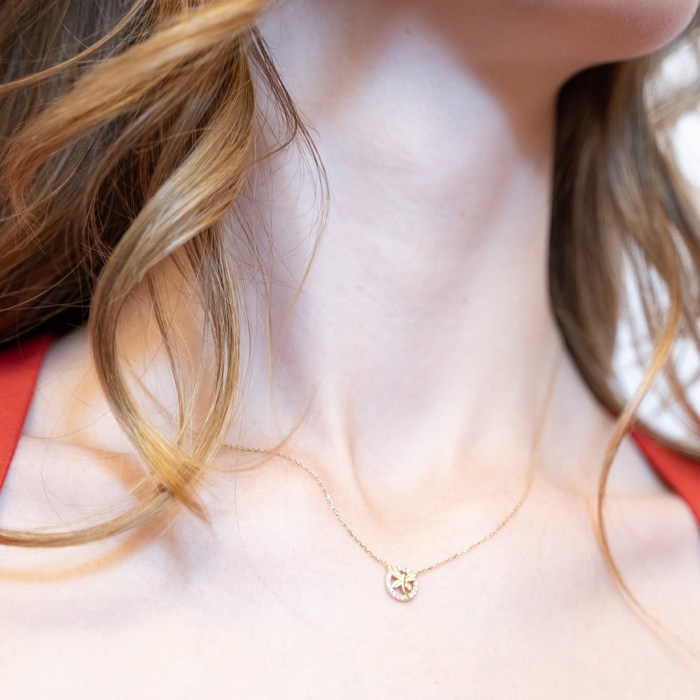 14 Ayar Altın Pırlanta Montürlü Su Yolu Kolye