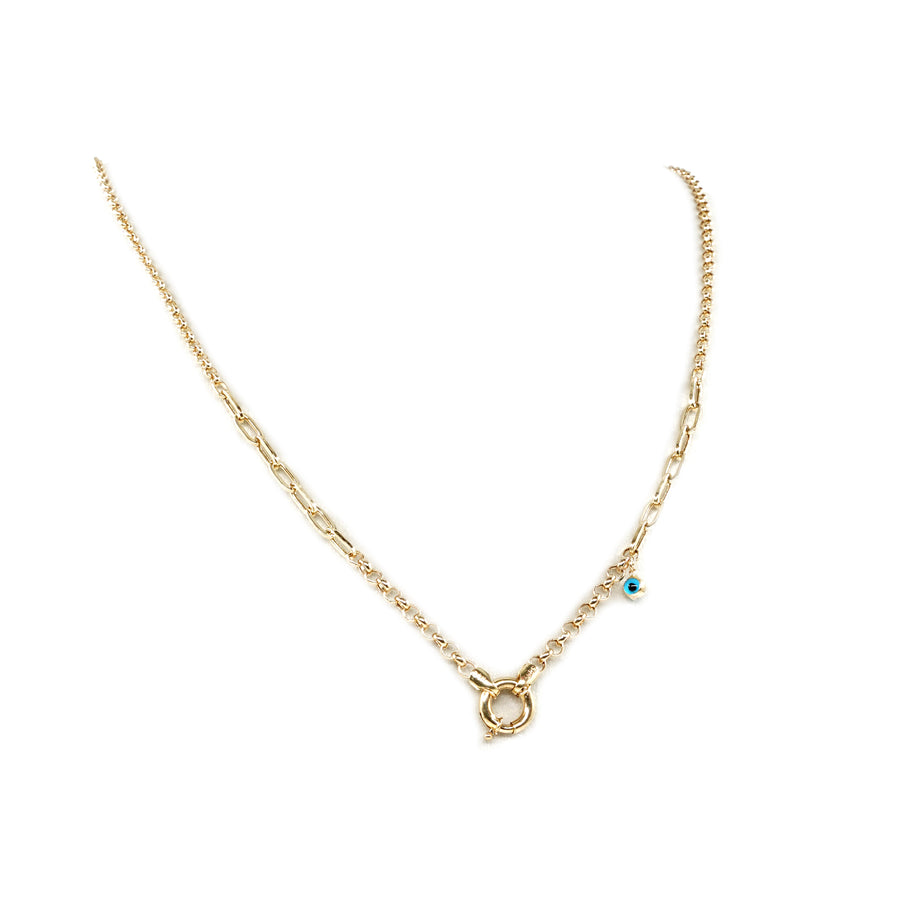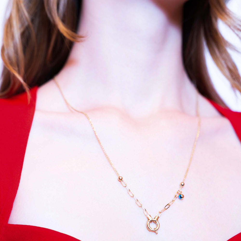 14 Ayar Altın Nazar Boncuklu Kilit Detaylı Kolye
