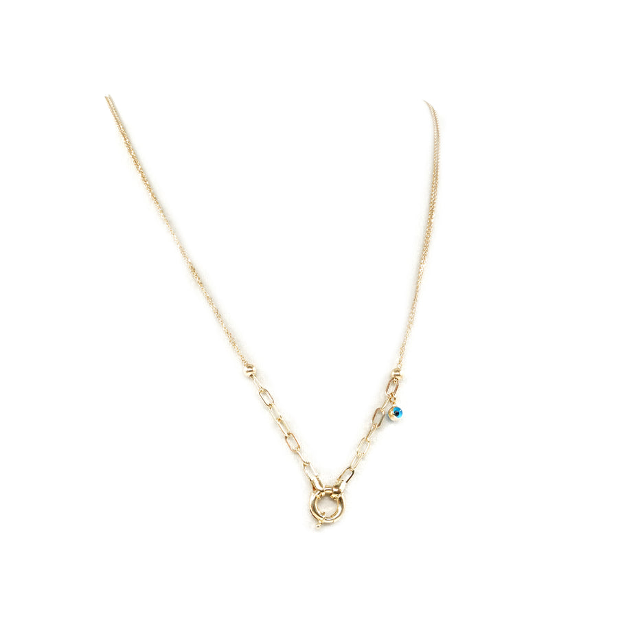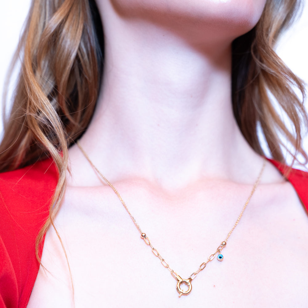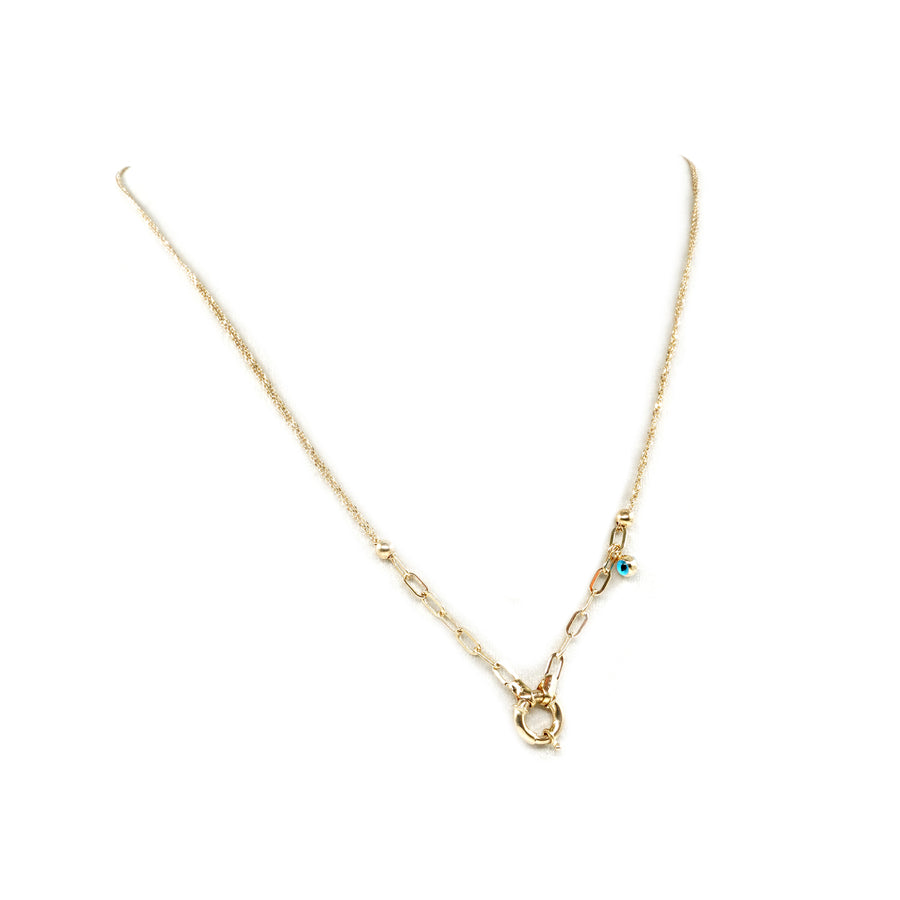 14 Ayar Altın Nazar Boncuklu Çift Zincir Kilit Detaylı Zincir