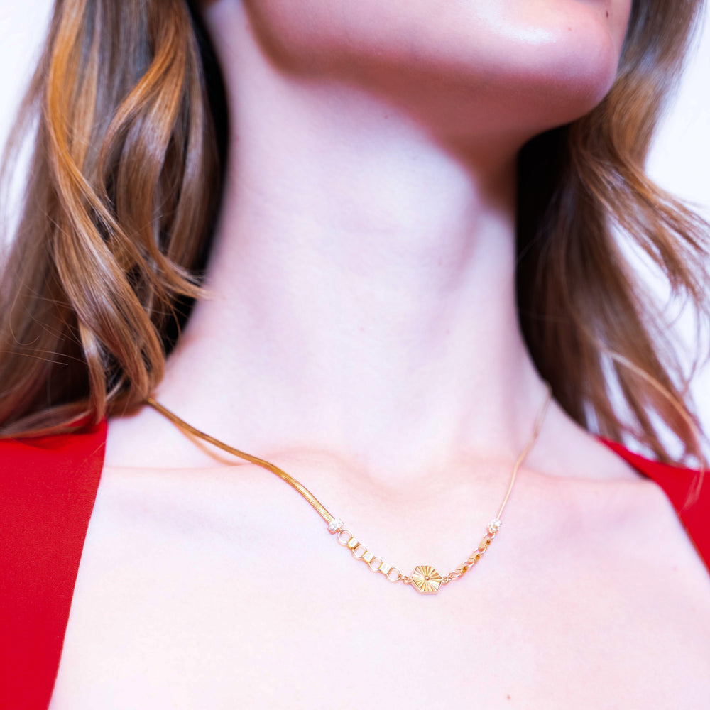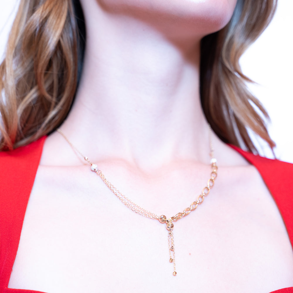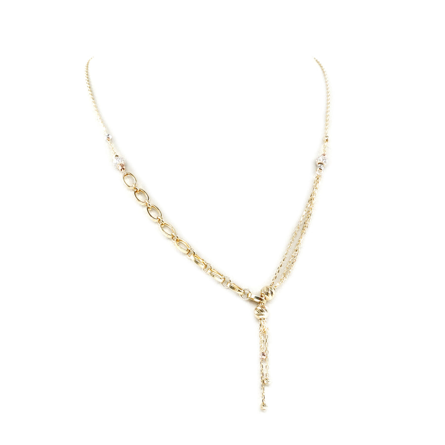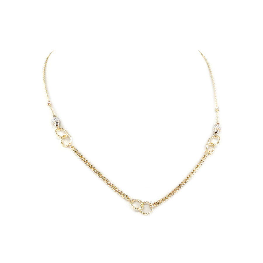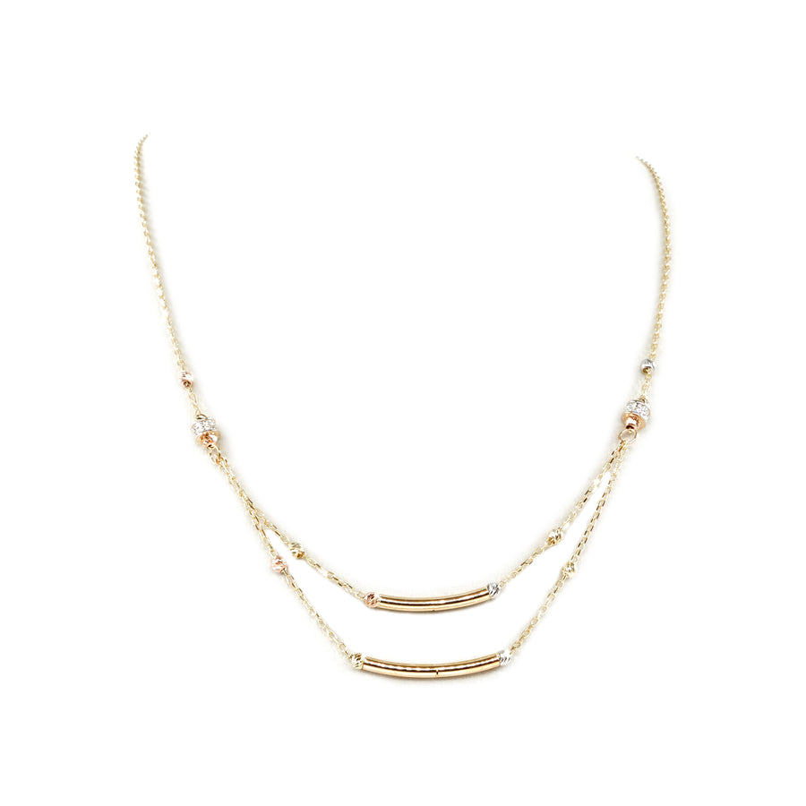 14 Ayar Altın Üç Renkli Dorikalı Çubuk Zincir