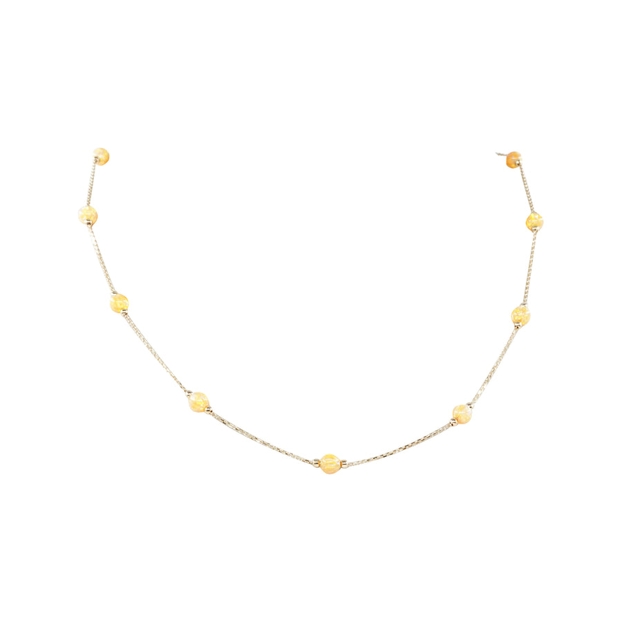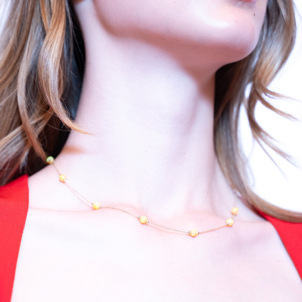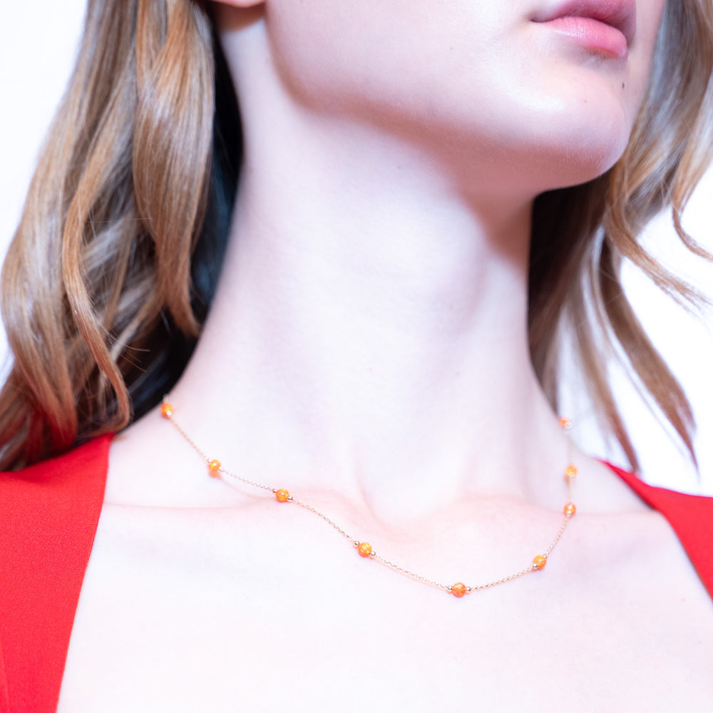 14 Ayar Altın Turuncu Taş Detaylı Zincir
