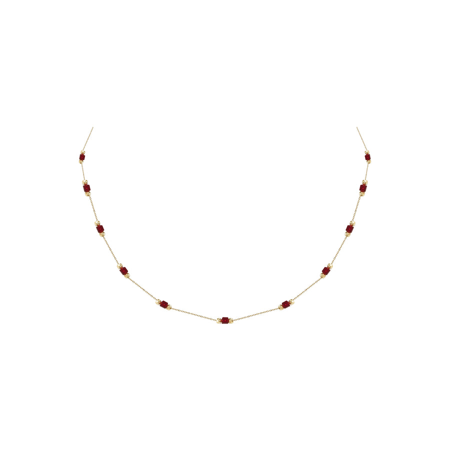 14 Ayar Altın Kırmızı Taş Detaylı Zincir