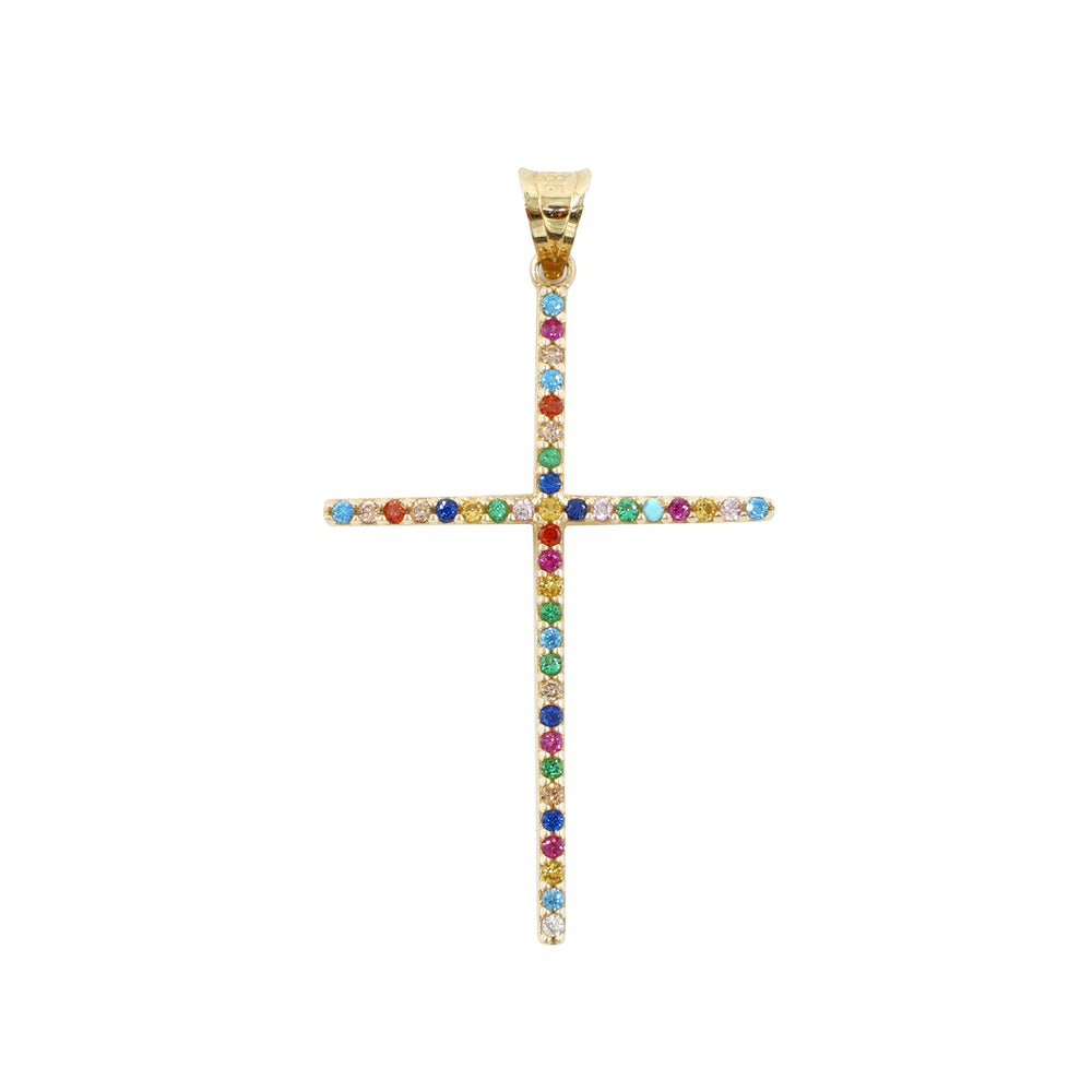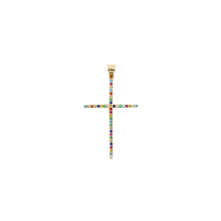 14 Ayar Altın Renkli Taşlı Haç Kolye Ucu