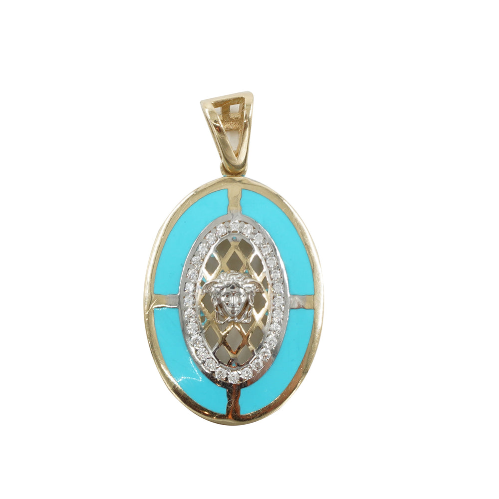 14 Ayar Altın Turkuaz Detaylı Oval Kolye Ucu
