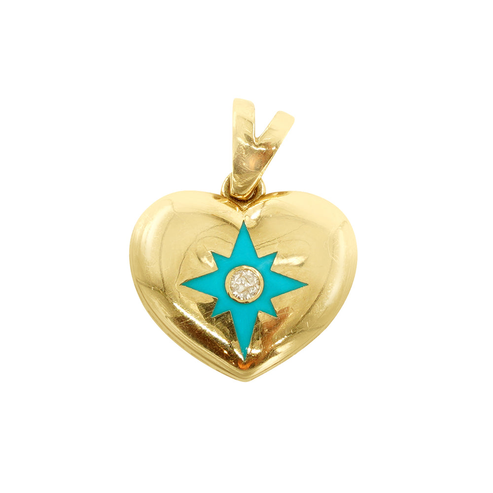 14 Ayar Altın Lacivert Kalp Kolye Ucu