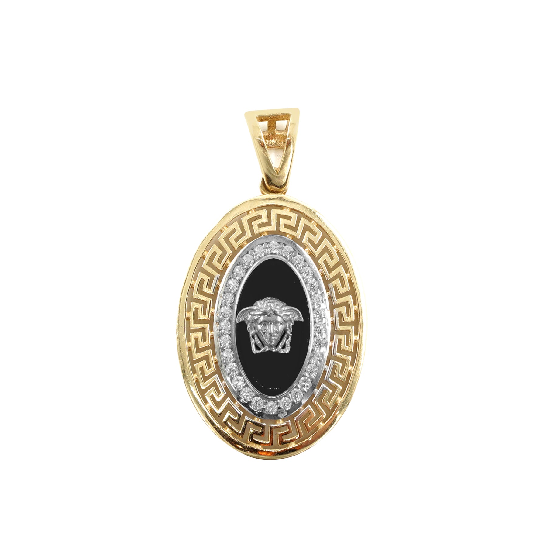 14 Ayar Altın Taşlı Siyah Oval Kolye Ucu