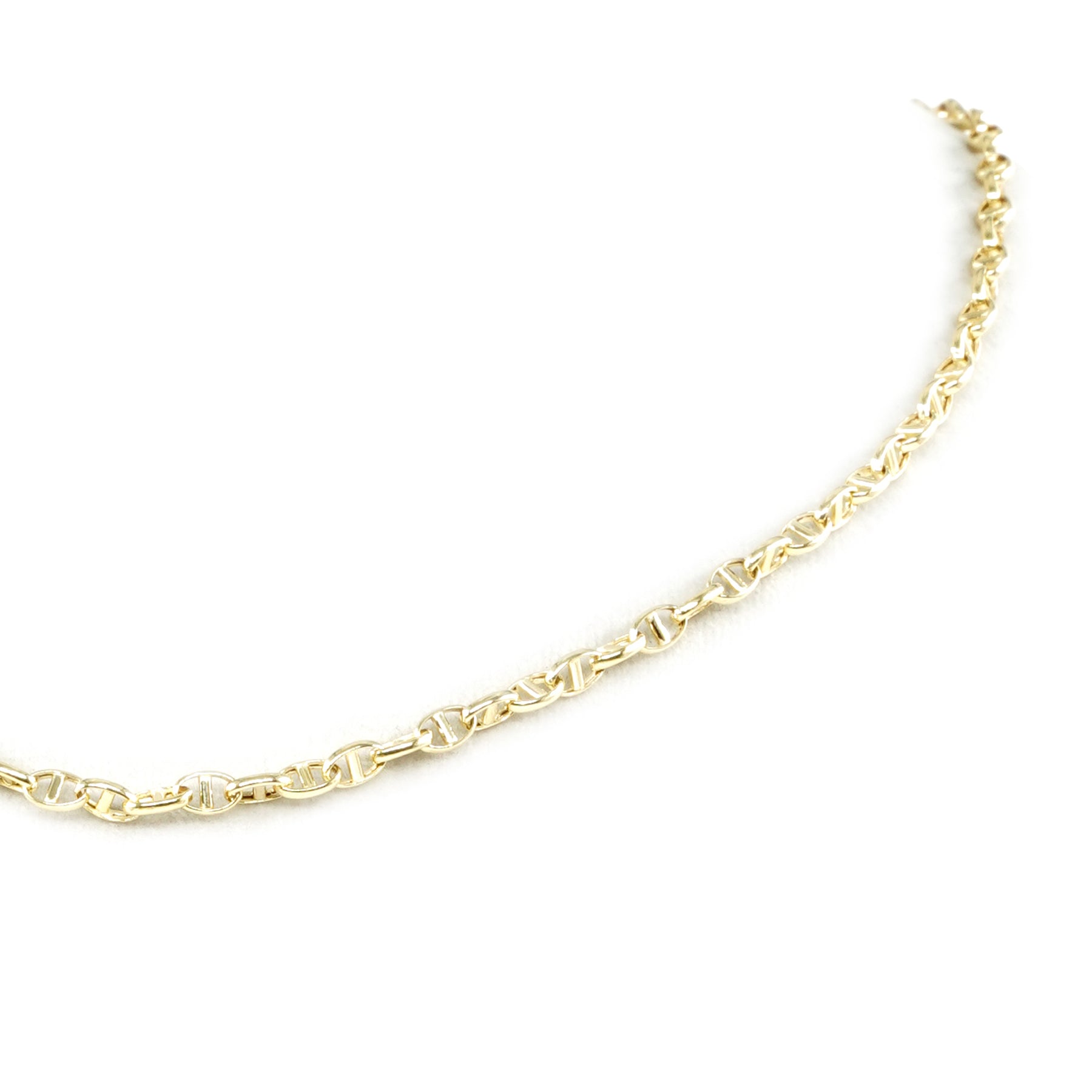 Sade ve şık tasarımıyla bu altın zincir kolye, tarzınıza zarif bir dokunuş katmak için ideal bir seçimdir.