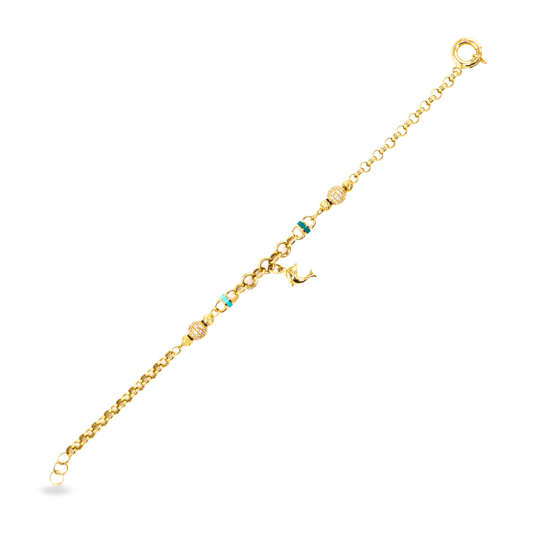 Estetik detaylarıyla öne çıkan bu altın bileklik, klasik dorika şıklığını renkli mine dokunuşları ve kuş figürüyle birleştirir. Kendinize stilinizi tamamlayacak şık bir parça arıyorsanız ya da sevdiklerinize değerli bir armağan düşünüyorsanız ideal tercihtir.